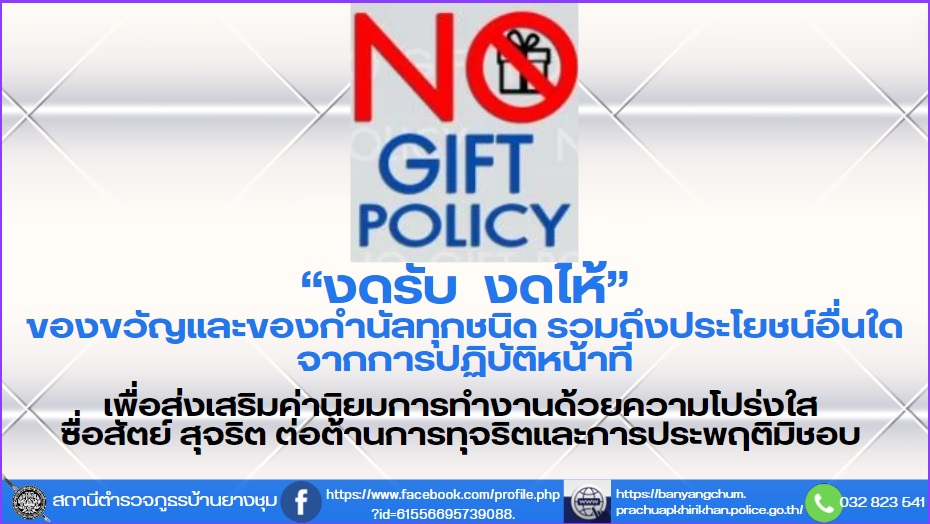 เจตนารมณ์ที่จะไม่รับของขวัญและของกำนัลทุกชนิดจากการปฏิบัติหน้าที่ (No Gift Policy) ฉบับภาษาไทย